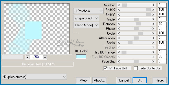 10 - Plugin Afs Import > SqBorder2: 70, 34, 215, 0, 0, 0, 0, 0. Mude o Blend desta layer para Dodge. Diminua a visibilidade desta layer para 70%.