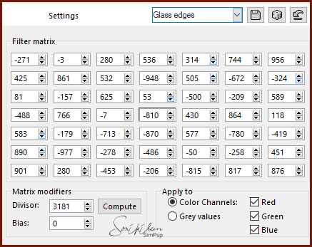 9 - Effects > User Defined Filter como abaixo. Preset Glass edges em material.
