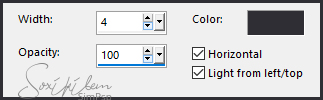 7 - Effects > Plugin Carolaine and Sensibility > CS-Ldots: 60, 3, 2. Adjust > Sharpness > Sharpen. Selections > Select None.