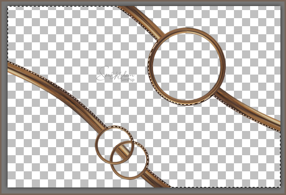 26 - Enable layer Merged. With the Magic Wand tool select the sides of the smaller circles. Activate the Raster 2 layer and press the Delete key on the Keyboard.