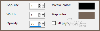 23 - Effects > Texture Effects > Weave. With background color in Gap color.