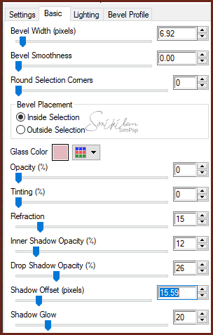 25 - Effects > Plugin Alien Skin > Eye Candy 5 > Impact > Glass. Settings: Clear.