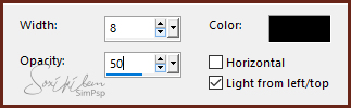 Effects > 3D Effects > Drop Shadow: 0, 0, 75, 50.