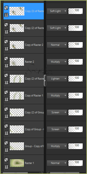 16 - Ativar a layer Copy of Group - Copy of Raster1. Layers > Properties > General > Blend Mode: Screen.