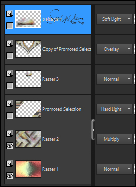 11 - Activate the Raster 2 layer. Selections > Load/Save Selection > Load Selection From Disk: 2DelicateSoxikibem. Selections > Promote Selection To layer. Selections > Select None.