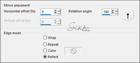 Activate Layer Raster 2. Layers > Merge > Merge Visibile. Duplicate the Merged layer. Effects > Reflection Effects > Rotating Mirror: