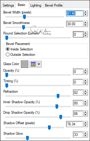 15 - Ativar a Layer Copy (2) of Raster 1 (Circulo). Com a farrementa Maigc Wand: Tolerance e Feather: 0, selecione o centro do circulo. Layers > New Raster Layer. Effects > Plugins > Alien Skin Eye Candy 5 Impact > Glass. Settings: Clear.