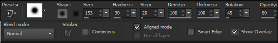 13 - Layers > New Raster Layer. Ative a ferramenta Clone Brush e configure como abaixo: