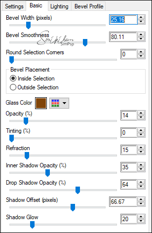 18 - Layers > New Raster Layer. Selections > Modify > Expand Selection: 1. Effects > Plugins > Alien Skin Eye Candy 5 - Impact > Glass: Settings: yellowBySoxiki. Ou Settings: Clear e configure o Basic como no exemplo: