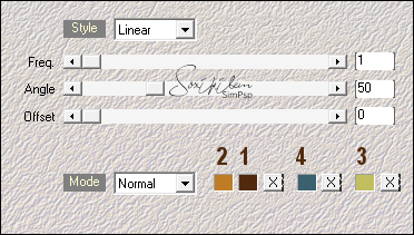1 - Abrir o material no PSP, duplique e feche os originais. Escolha quatro cores para trabalhar. Foreground: #512a0d Background: #be7c25 Cor 3: #c0be5e Cor 4: #3b616e