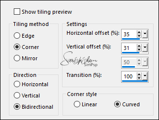 11 - Ativar e abrir a visibilidade da Layer Promoted Selection. Selections > Load/Save Selections > Load Selection From Disk: Selection2BySoxiki. Edit > Copy no Misted Floral. Edit > Paste Into Selection. Adjust > Sharpness > Sharpen. Layers > Properties > General > Blend Mode: Overlay - Opacity 60%. Selections > Select None Effects > Image Effects > Seamless Tiling: Default.