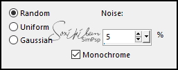 5 - Adjust > Add/Remove Noise > Add Noise: