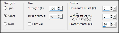 12 - Selections > Select All. Selections > Modify > Contrat: 200. Selections > Promote Selection to Layer. Adjust > Blur > Radial Blur.