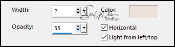 14 - Selections > Modify > Contract: 40. Effects > 3D Effects > Drop Shadow: -1, -1, 100, 1, cor foreground. Effects > 3D Effects > Drop Shadow: 1, 1, 100, 1, cor foreground.