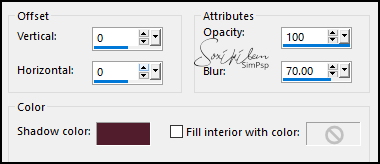 Layers > Merge > Merge Down. Effects > 3D Effects > Drop Shadow: 15, 15, 100, 10, cor foreground. Selections > Select None.
