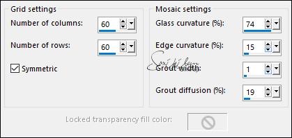 8 - Selections > Load/Save Selections > Load Selection From Disk: Selection266_Xiki1. Selections > Promote Selection to Layer. Effects > Texture Effects > Mosaic - Glass.