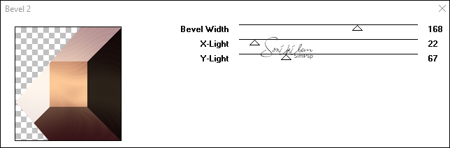 10 - Ativar a Layer Raster 1. Selections > Load/Save Selections > Load Selection From Disk: Selection266_Xiki2. Selections > Promote Selection to Layer. Plugins > Filter Factory Gallery G > Bevel 2.