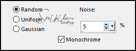 36 - Adjust > Add/Remove Noise > Add Noise: Gaussian, 10, Monochrome marcado. Selections > Invert.