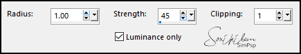 19 - Ativar a Layer Raster 2. Layers > Duplicate. Image > Resize: 35%, all layers desmarcado. Pick Tool: Position X: 130 - Position Y: 54. Adjust > Sharpness > Sharpen. Plugins > Simple > Top Left Mirror.