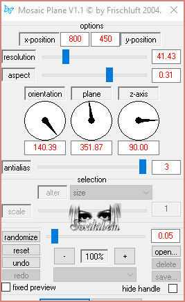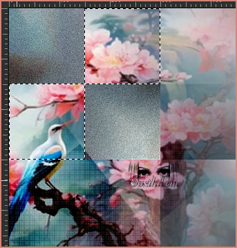 7 - Selections > Load/Save Selections > Load Selection From Disk: WhisperingPetals_Xiki1. Selections > Promote Selection to Layer. Selections > Select None. Effects > Plugins > Frischluft > Mosaic Plane.