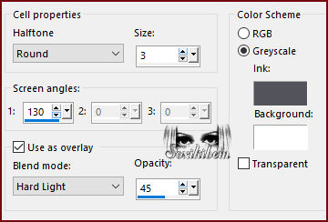 21 - Effects > Artistic Effects > Halftone. Com a cor do Foreground. Adjust > Sharpness > Sharpen More.