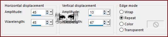 11 - Ativar a Layer Raster 2. Effects > Distortion Effects > Wave. Pick Tool: Position X: 0, Positon Y: 35. Layers > Duplicate. Image > Mirror > Mirror Vertical. Layers > Merge > Merge Down.