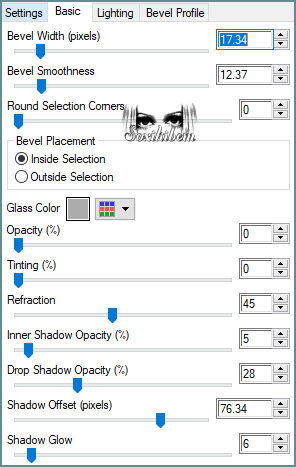 15 - Plugin Alien Skin | Eye Candy 5 | Impact > Glass. Selections > Select None.