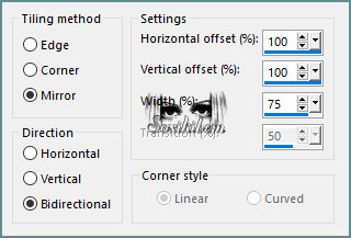 6 - Effects > Reflection Effects > Rotating Mirror: Horizontal Offset 0, Rotation angle 180, Edge Mode Reflect. Plugin FM Tile Tools > Blend Emboss: Default. Edit > Repeat Blend Emboss.