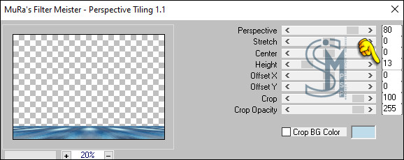 Edit > Paste Into Selection. Selections > Select None. Effects > Plugins > MuRa’s Meister > Perspective Tiling: