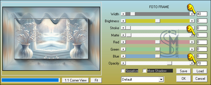 14 - Effects > Edge Effects > Enhance. Effects > Plugins > AAA Frames > Foto Frame: