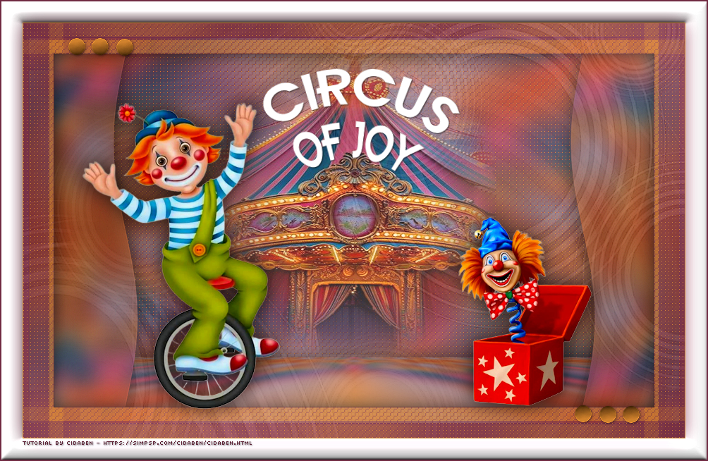 22 - Edit > Copy no Titulo27_Circus_of_Joy_CBen26. Edit > Paste As New Layer. Pick Tool > Position: X: 352,00 > Y: 47,00, ou posicionar como preferir.