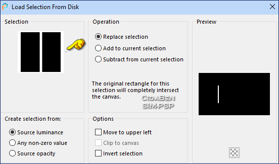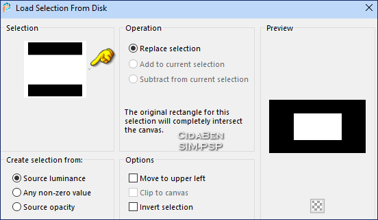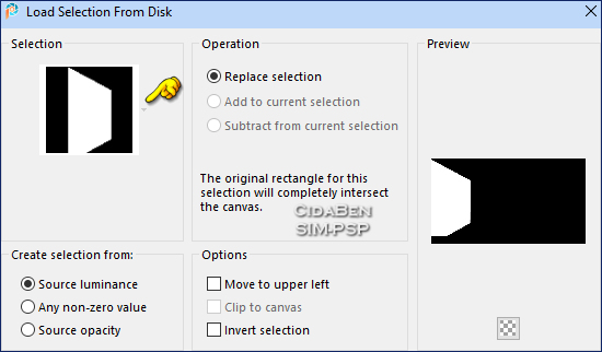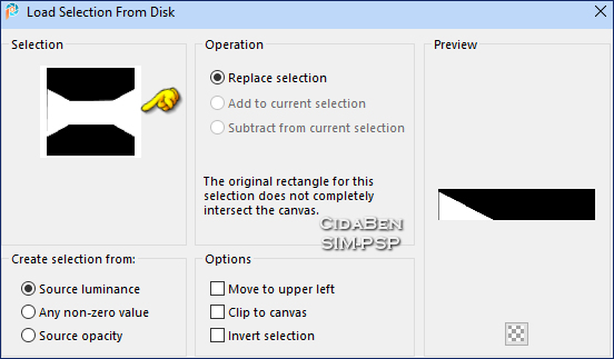15 - Layers > New Raster Layer. Selections > Load/Save Selections > Load Selection From Disk: 28_CBen4.