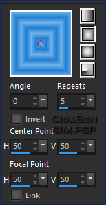 Pintar a seleção com o gradiente Retangular: Angle 0 > Repeats 5, com as cores Foreground e Background.