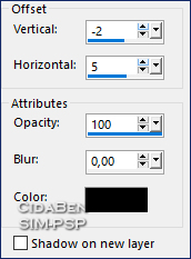 Selections > Promote Selection to Layer. Selections > Select None. Effects > 3D Effects > Drop Shadow: cor #000000 (preto)