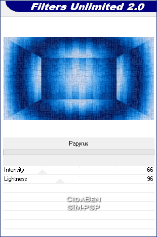 7 - Ativar a Layer > Copy of Raster 1. Effects > Plugins > Filters Unilimted 2.0 > Paper Texture > Papyrus.
