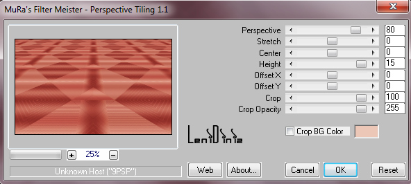23- Activate the layer Raster 1. Layers > Duplicate. Layers > Arrange > Bring to Top. Effects > Plugin Muras Meister > Perspective Tiling: