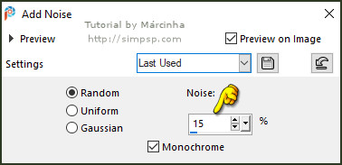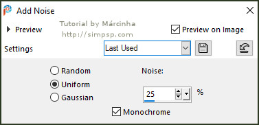 26 - Ativar a layer Raster 5. Adjust > Add/Remove Noise > Add Noise: