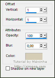 Effects > 3D Effects > Drop Shadow: com a cor do Background: #d5cdb5