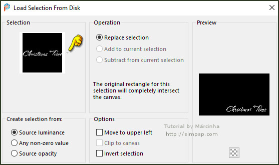 24 - Ativar a layer Raster 4. Layers > New Raster Layer. Selections > Load/Save Selections > Load Selection From Disk: Selection1_ChristmasTime