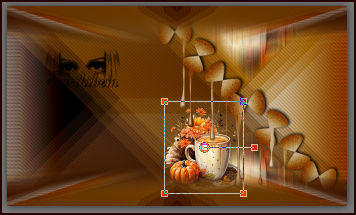 21 - Ative a layer Promoted Selection. Edit > Copy no 126DiversosByPqnaAlice ou Misted ou tube tema Halloween. Edit > Paste a New Layer. Image > Resize se necessário, no tube do material foi de 30%. Image > Mirror > Mirror Horizontal. Adjust > Sharpness > Sharpen. Aplique Drop Shadow como preferir. Posicione como no print, dando a impressão que o efeito Drip esta caindo na xícara. * Uma parte da imagem ficou abaixo do efeito da layer Copy of Raster 1,deixe assim para dar um ar meio de mistério.