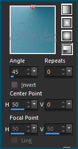 30 - Layers > Merge > Merge visible. Com a ferramenta Magic Wand selecionar a borda de 50px. Pintar com o Gradiente > Linear com as cores escolhidas: Angle 45, Repeats 1, Invert desmarcado. Selections > Select None.