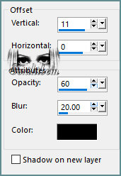 20 - Effects > 3D Effects > Drop Shadow: color: #000000 Repita o Drop Shadow mudando em Vertical para -14. Selections > Select None.