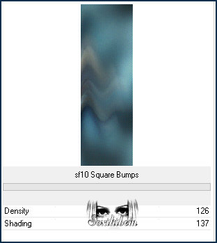 16 - Filters Unlimited 2.0 > Backgroun Designeers IV > sf10 Square Bumps. Effects > 3D Effects > Drop Shadow: 0, 0, 100, 35, cor: #000000 (preto). Selections > Select None. Layers > Duplicate. Image > Mirror > Mirror Horizontal. Layers > Merge > Merge Down. Efects > Image Effects > Seamless Tiling: Default.