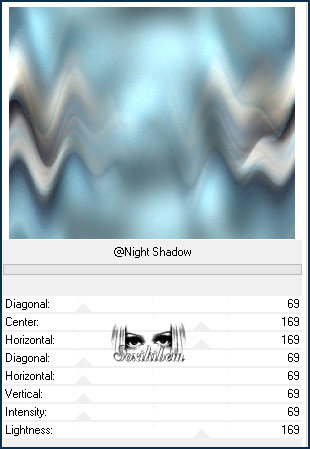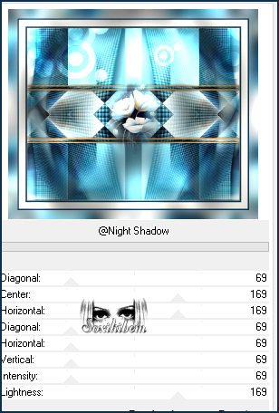 22 - Filters Unlimited 2.0 > Backgroun Designeers IV > sf10 Slice N Dice. Adjust > Blur > Gaussian Blur: 20. Filters Unlimited 2.0 > Backgroun Designeers IV > @Night Shadow.