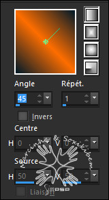 - 02 - Le remplir avec le dégradé Linéaire suivant: Angle: 45 - Répét: 1