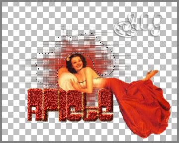 8-Depois de acomodar o tube sobre o texto vá em Layers>Merge>Merge Visible e Ctrl +D para duplicar a imagem . Pegue a ferramenta laço para selecionar a parte onde vamos colocar o plugin sparkle