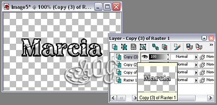 7 - Esconda essa layer que acabou de preencher e ative a layer seguite. Volte na sua paleta de cores e modifique o Fareground mudando o angle a pattern do glitter para 90 e preencha a 2ª layer. 8-Proceda como no item 7 para preencher a proxima layer, mudando o ANGLE da partter para 40. 9- E para preencher a última layer coloque o ANGLE em 60. 10- Terminando de preencher as partes internas do nome Select None. Recorte seu trabalho para dar acabamento e salve seu trabalho em .psp No Animation: 1- Abra no Animation o nome que vc acabou de salvar e a gif do tamanquinho e reserve. 2- Abra uma imagem transparente de 300x300. E em seguida adicone mais 3 frames a essa imagem para isso vá em Animation > Insert Frames > Empty e em Number of Frames coloque em 3. 3- Com essa imagem ativa Edit > Select All ou Ctrl+A. 4- Ative seu nome e selecione as frames tbém e de pois Edit > Copy. 5- Na imagem que estamos trabalhando Edit > Past > Into Selected Frame. E antes de soltar centralize na parte superior da imagem.