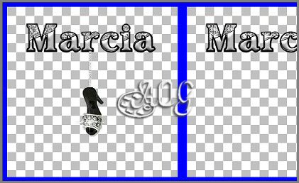 6- Ative a gif do tamanquinho e selecione as frames tbém e de pois Edit > Copy. 7- Na imagem que estamos trabalhando Edit > Past > Into Selected Frame. E antes de soltar centralize bem no meio do seu nome: 8 - Depois do nome completo e com todas as frames selecionadas recorte seu trabalho para dar acabamento final usando o Crop. 9- Ainda com as frames selecionadas vá em: