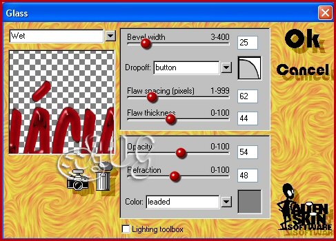 Tubes, Mask e Fonte (anexos) Plugin Alien Skin > Glass Efeitos do PSP 8 Animation Shop