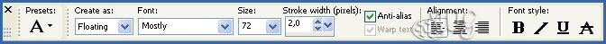 1- Abrir uma transparência de 1024 x 400 px Configurar a ferramenta Text com a Fonte Mostly Regular, conforme o print: